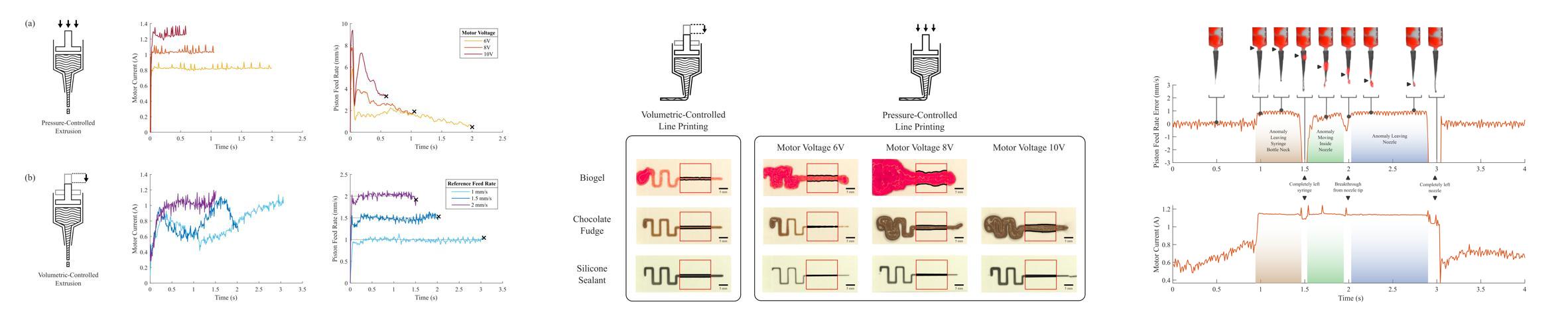 All hardware in this research displayed below is developed solely by myself, however, the concept, firmware, and experimental design are the result of an intensive collaboration between my colleagues. In this research, I proposed a flexible actuation method for precise actuation of viscoelastic material, powered by intrinsic sensing ability to sense extrusion pressure and flow rate, together with material properties.